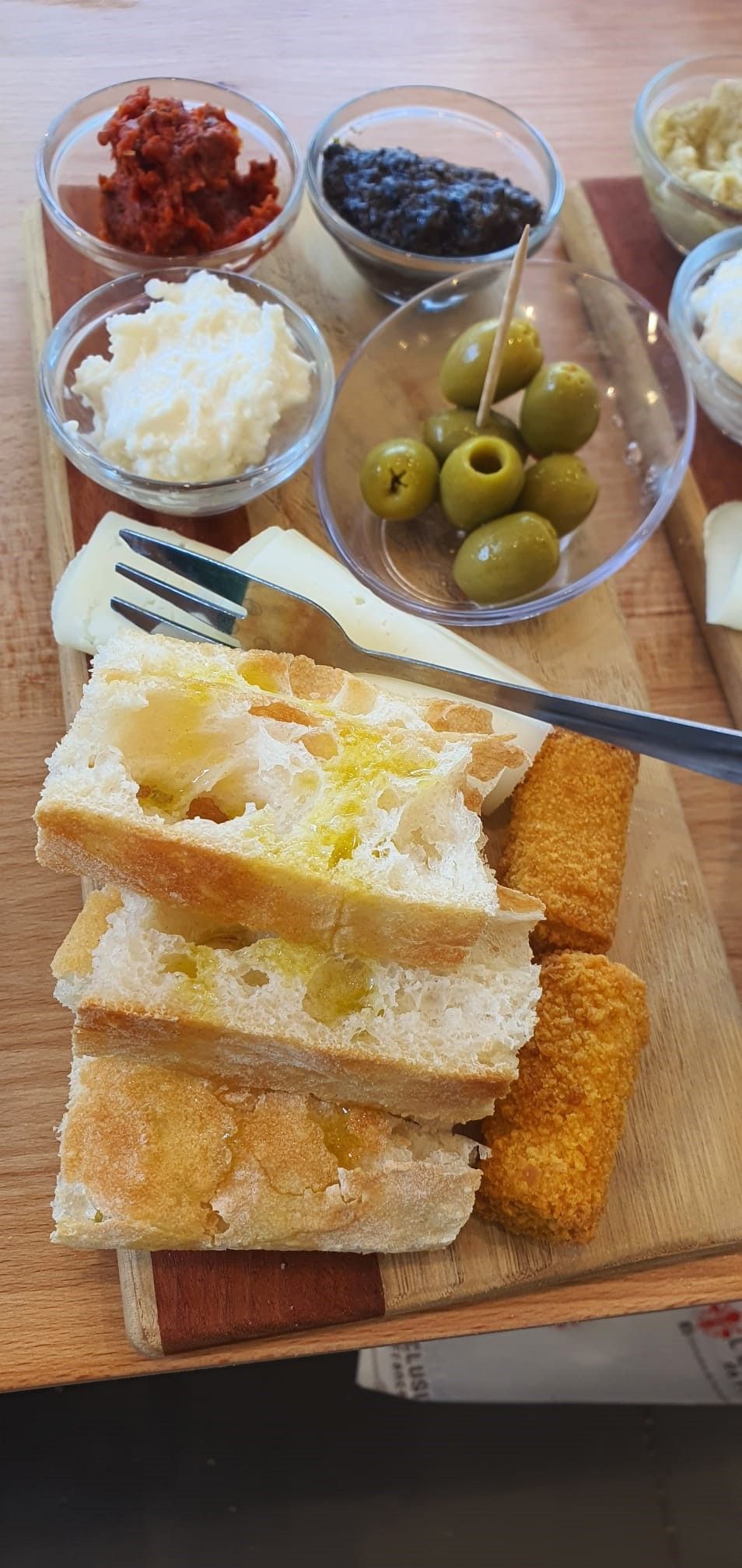 Crocchette di patate, pomodori secchi, crema di carciofi,olive,
