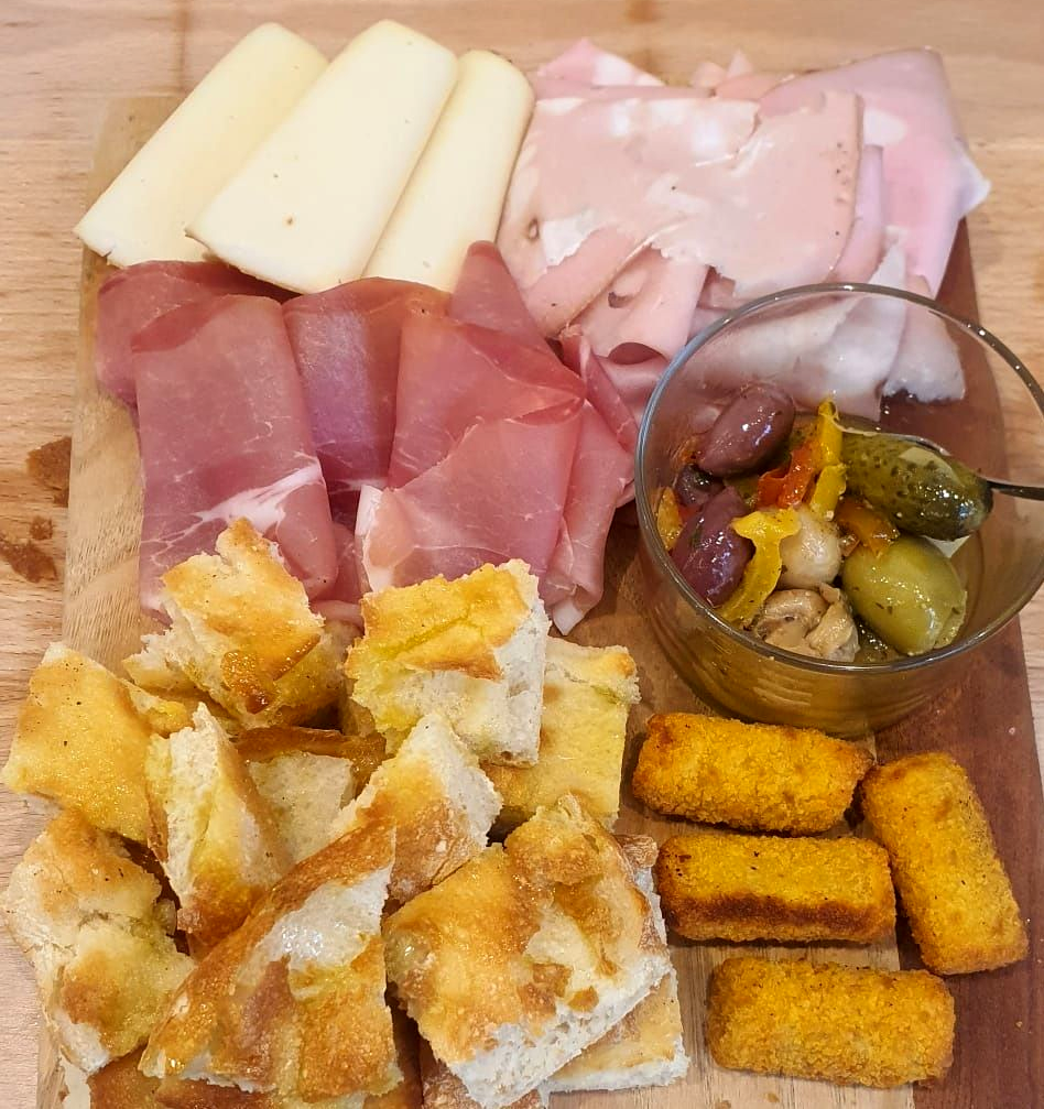 Crudo, soprassata, pancetta, lardo, 2 tipi di formaggio, Mozzarelline e pomodori secchi